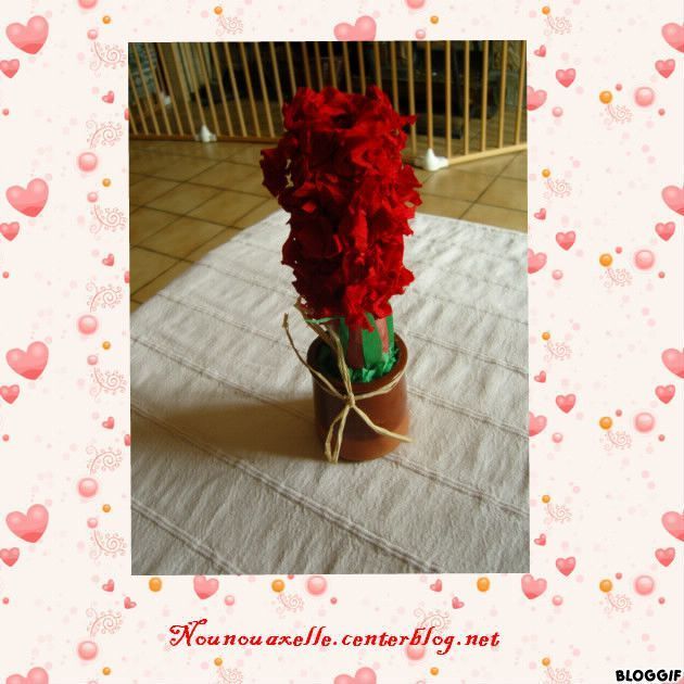 Sur la photo, c'est ma jacinthe que j'ai faite avec un carton de sopalin et des morceaux de papier crépon.