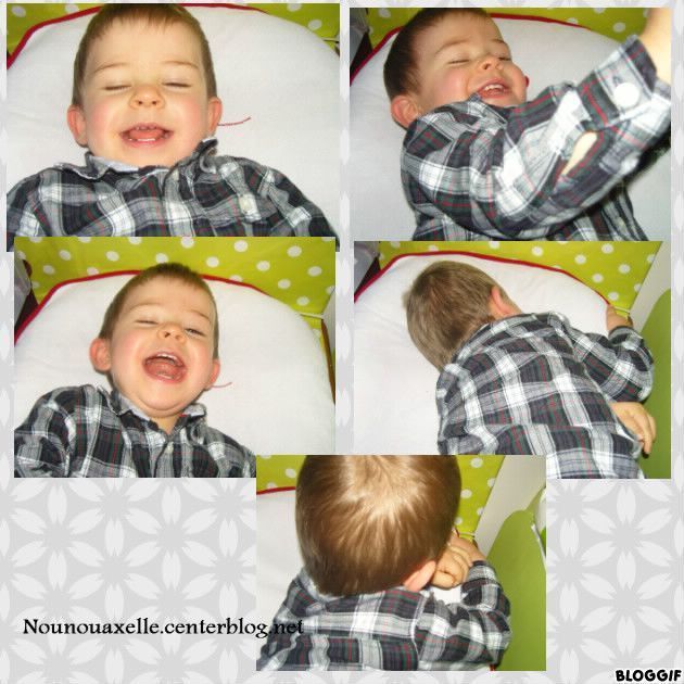 Bon, dès fois, cela ne marche pas du tout !! Bébé veut jouer avec Nounou. Il fait son coquin tout en étant mord de rire que Nounou n'y arrive pas.